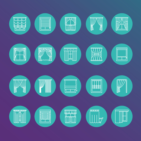 窓のカーテン シェード ライン アイコンです さまざまな部屋の装飾