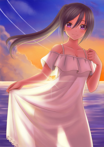 白いワンピースと夕日の海 Guttyo さんのイラスト ニコニコ静画