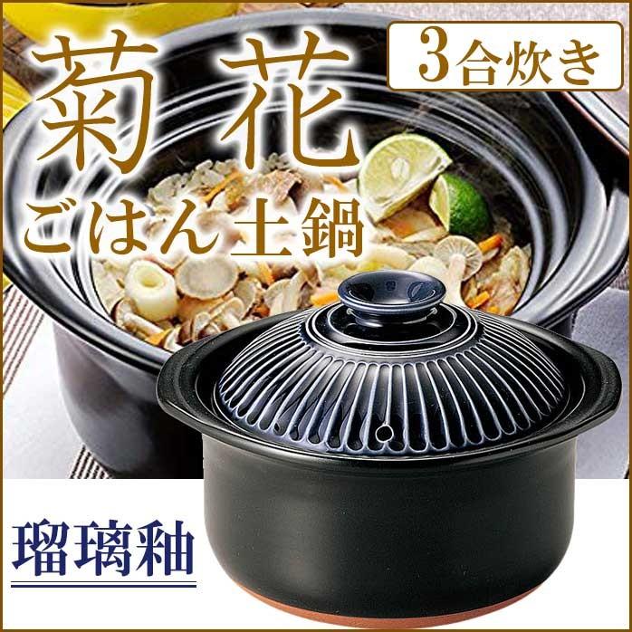 炊飯土鍋 菊花 瑠璃釉 3合炊き 萬古焼 銀峯 土鍋 日本製 2重蓋 ごはん
