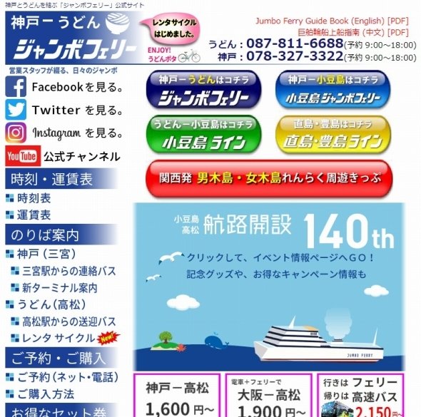 ジャンボフェリー 公式サイト 神戸 大阪 うどん県高松 小豆島
