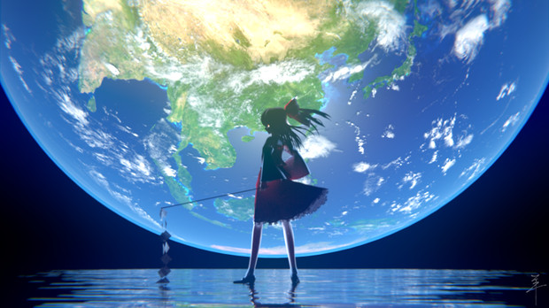 月の海に立つ巫女 Sheep3d さんのイラスト ニコニコ静画 イラスト