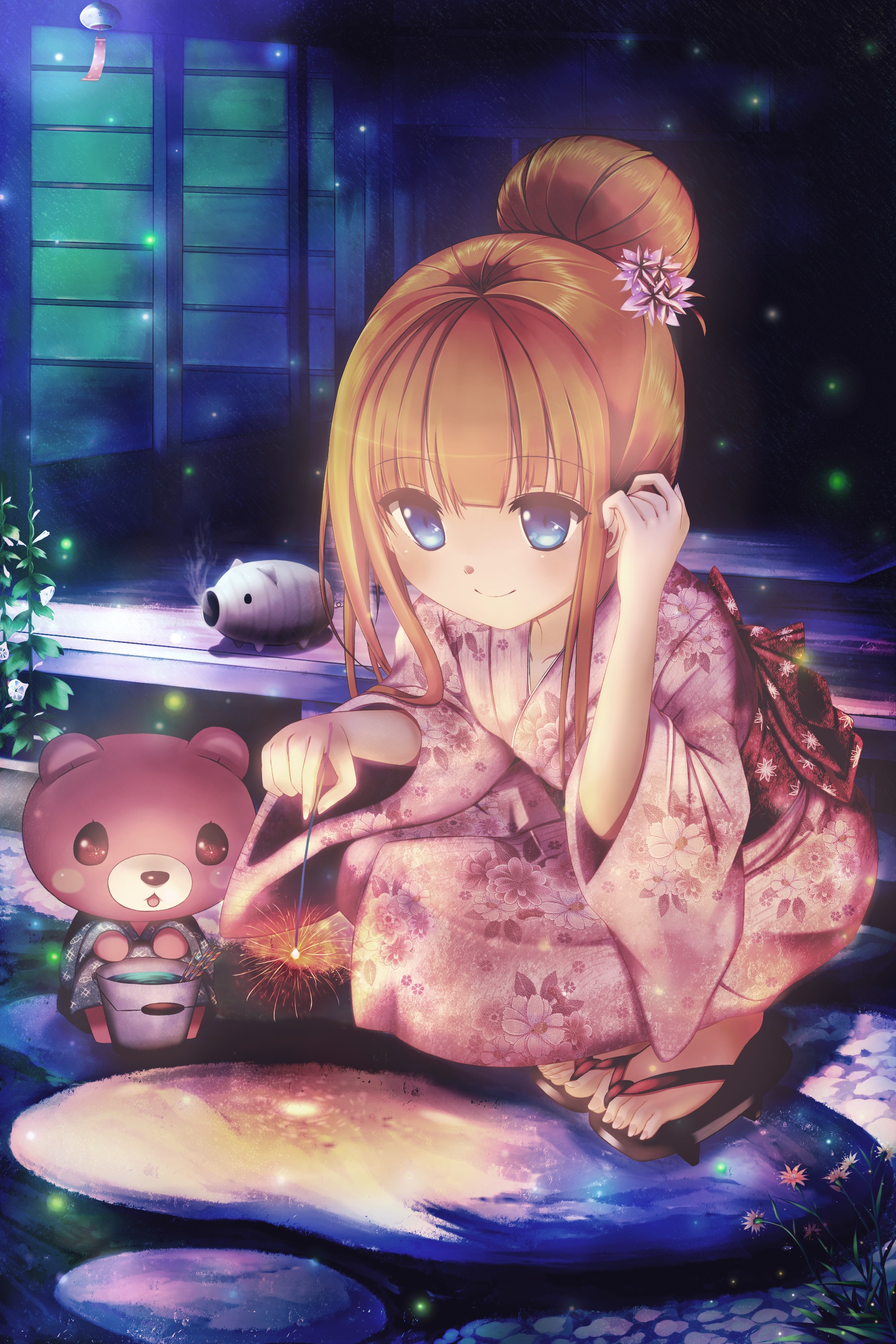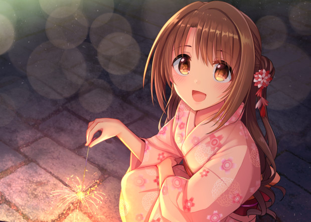 オリジナル 線香花火 くきはのイラスト アニメ着物 アニメの風景