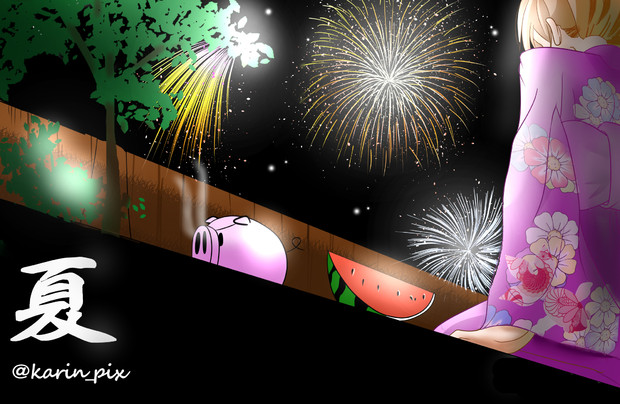 花火と縁側 しらたま さんのイラスト ニコニコ静画 イラスト