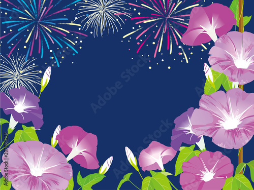 朝顔と花火 背景イラスト Adobe Stock でこのストックベクターを購入