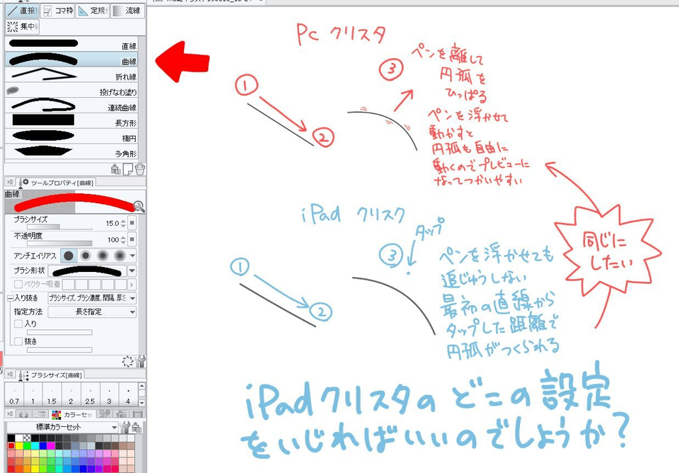 曲線ツール Pc版 Ipad版 の操作の違いを設定で同じにしたい