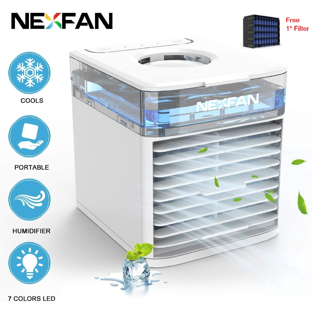 Free Gift 1 Filter Nexfan New Air Cooler With Uv Sterilization Light Mini Portable Air Conditioner Cooler Fan 4 In 1 Personal Evaporative 3 Speed Desktop Cooling Cooler Fan Humidifier With 7 Colors Led